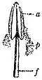Fig. 25.—Stamen, consisting of a filament (stalk) f and an anther a, containing the pollen p, which is discharged through slits in the two lobes of the anther. | |||||||||||||||
