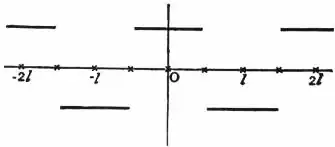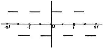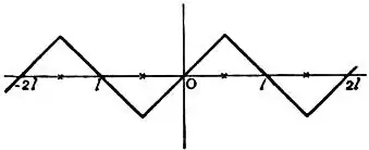 For unrestricted values of x, this series represents the ordinates of the series of straight lines in fig. 1, except that it vanishes at the points 0, 1/2l, l, 3/2l ...