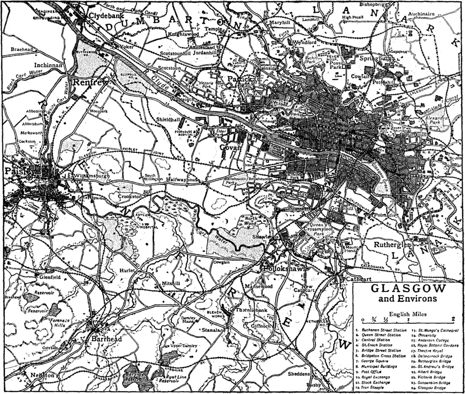 Authorities.—J. Cleland, Annals of Glasgow (Glasgow, 1816); Duncan, Literary History of Glasgow (Glasgow, 1886); Registrum Episcopatus Glasgow (Maitland Club, 1843); Pagan, Sketch of the History of Glasgow (Glasgow, 1847); Sir J. D. Marwick, Extracts from the Burgh Records of Glasgow (Burgh Records Society); Charters relating to Glasgow (Glasgow, 1891); River Clyde and Harbour of Glasgow (Glasgow, 1898); Glasgow Past and Present (Glasgow, 1884); Munimenta Universitatis Glasgow (Maitland Club, 1854); J. Strang, Glasgow and its Clubs (Glasgow, 1864); Reid (“Senex”), Old Glasgow (Glasgow, 1864); A. Macgeorge, Old Glasgow (Glasgow, 1888); Deas, The River Clyde (Glasgow, 1881); Gale, Loch Katrine Waterworks (Glasgow, 1883); Mason, Public and Private Libraries of Glasgow (Glasgow, 1885); J. Nicol, Vital, Social and Economic Statistics of Glasgow (1881); J. B. Russell, Life in One Room (Glasgow, 1888); Ticketed Houses (Glasgow, 1889); T. Somerville, George Square (Glasgow, 1891); J. A. Kilpatrick, Literary Landmarks of Glasgow (Glasgow, 1898); J. K. M‘Dowall, People’s History of Glasgow (Glasgow, 1899); Sir J. Bell and J. Paton, Glasgow: Its Municipal Organization and Administration (Glasgow, 1896); Sir D. Richmond, Notes on Municipal Work (Glasgow, 1899); J. M. Lang, Glasgow and the Barony (Glasgow, 1895); Old Glasgow (Glasgow, 1896); J. H. Muir, Glasgow in 1901.