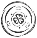 Fig. 2.—Diagram of Trimerous Symmetrical Flower of Iris, with two whorls of perianth, three stamens in one whorl and an ovary formed of three carpels. The three dots indicate the position of an inner whorl of stamens which is present in the allied families Amaryllidaceae and Liliaceae but absent in Iridaceae. |