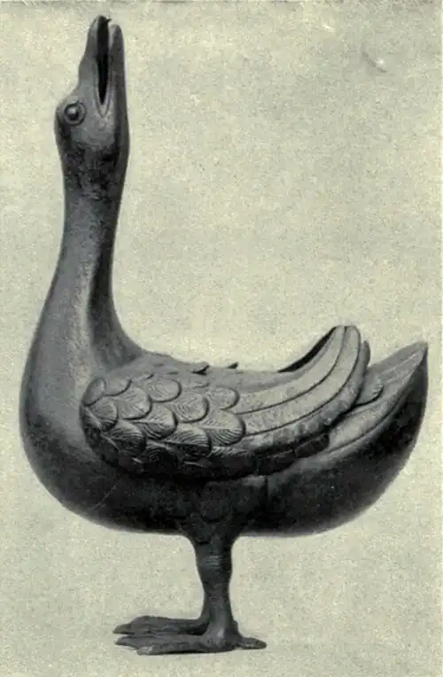 | Fig. 15.—BRONZE DUCK INCENSE BURNER (15th century). British Museum. | ||||
