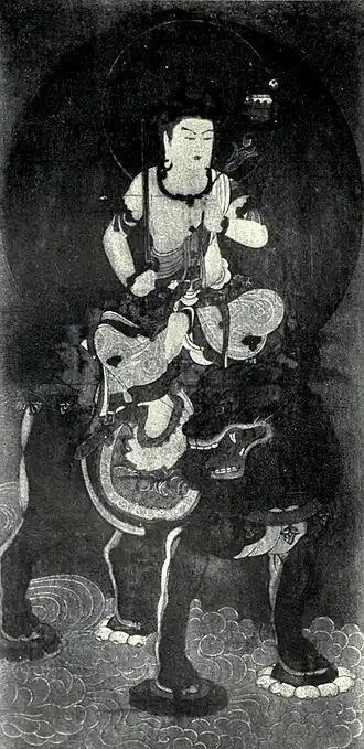 The paintings of which we have any mention were almost limited to representations of Buddhist masters of the Tang dynasty (618–905), notably Wu Tao-zu (8th century), of whose genius romantic stories are related. The oldest existing work of this period is a mural decoration in the hall of the temple of Horyū-ji, Nara, attributed to a Korean priest named Donchô, who lived in Japan in the 6th century; and this painting, in spite of the destructive effects of time and exposure, shows traces of the same power of line, colour and composition that stamps the best of the later examples of Buddhist art.