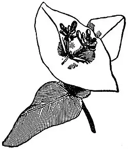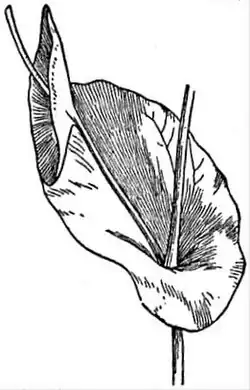 Fig. 22.—Pitcher (ascidium) of a species of Side-saddle plant (Sarracenia purpurea). The pitcher is formed from the petiole, which is prolonged. |