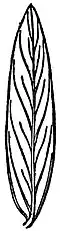 Fig. 7.—Ovate acute leaf of Coriara myrtifolia. Besides the midrib there are two intra-marginal ribs which converge to the apex. The leaf is therefore tricostate.
