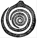 In cases where the internodes are very short and the leaves are closely applied to each other, as in the house-leek, it is difficult to trace the generating spiral. Thus, in fig. 34 there are thirteen leaves which are numbered in their order, and five turns of the spiral marked by circles in the centre (5/13 indicating the arrangement); but this could not be detected at once. So also in fir cones (fig. 35), which are composed of scales or modified leaves, the generating spiral cannot be determined easily. But in such cases a series of secondary spirals or parastichies are seen running parallel with each other both right and left, which to a certain extent conceal the genetic spiral.