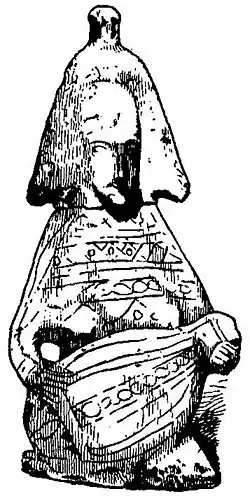| Fig. 1.—Post-Mycenaean terra-cotta figure, with ancient lute (1000 B.C.) from the cemetery at Goshen. |