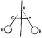 If the rod of a revolving pendulum be jointed, as in fig. 132, not to a point in the vertical axis, but to the end of a projecting arm C, the position in which the bob will revolve will be the same as if the rod were jointed to the point O, where its prolongation cuts the vertical axis.