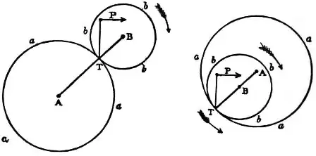 § 23. Comparative Motion.—The comparative motion of two points is the relation which exists between their motions, without having regard to their absolute amounts. It consists of two elements,—the velocity ratio, which is the ratio of any two magnitudes bearing to each other the proportions of the respective velocities of the two points at a given instant, and the directional relation, which is the relation borne to each other by the respective directions of the motions of the two points at the same given instant.