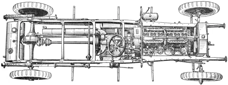 Fig. 5.—Plan View of the 40–50 h.p. Six-Cylinder Rolls-Royce Chassis (1910 type).