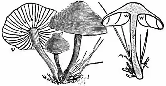 - ↑ The earlier 15th-century form of the word was musseroun, muscheron, &c., and was adapted from the French mousseron, which is generally connected with mousse, moss.