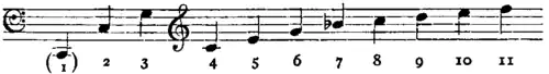 - ↑ For an explanation of the difference between theory and practice in the length of the tubes of wind instruments, see Victor Mahillon, “Le cor” (Les instruments de musique au musée du conservatoire royal de musique de Bruxelles, pt. ii. Brussels and London, 1907), pp. 27-29.