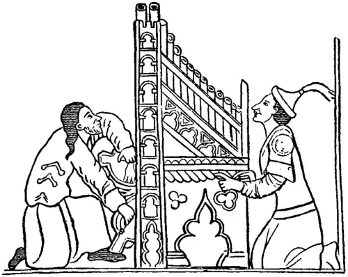 - ↑ See also for other organs with sliders being drawn out, A. Haseloff, Eine Sächsischthüringische Malerschule um die Wende des XIII. Jahrh., pl. xxvi. No. 57, part of Studien zu der Kunstgeschichte; the same is reproduced in Gori’s Thesaurus diptychorum, Bd. iii. Tab. 16, where it is falsely ascribed to the 9th century.