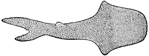 | From the Trans. Roy. Soc. Edinburgh. Fig. 1.—Thelodus scoticus, from the Upper Silurian of Lanarkshire, restored by Dr R. H. Traquair; about one-half nat. size. |