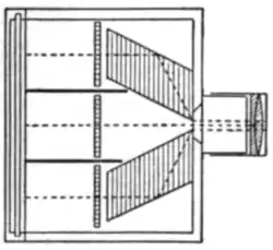 Several forms of developing tanks and machines have been constructed for developing a number of exposed plates, together with ordinary or dilute developers, with the aid of the factorial system or independently of it. The Kodak “Automatic Developing Tank” (1905) is a useful arrangement by which bands of exposed roll films can be developed in daylight, without any need of a dark-room (fig. 74).