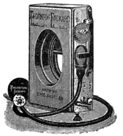 Convenient exposure meters have been made since 1890 by A. Watkins, of Hereford, in different forms based upon an actinometrical test of the light at the time of exposure. In the complete “Standard Meter” (1890) scales corresponding to “speed of plate,” “diaphragm 𝑓 numbers,” “light,” “subject” and “enlarging,” marked P. D. A. S. and E., are arranged on rings adjustable round a cylinder.