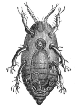 PHYLLOXERA (Gr. φύλλον, leaf, and ξηρός, dry), a genus of insects belonging to the family of Aphidae, or Plant-lice, in the Homopterous section of the order Hemiptera. It is chiefly known from the causal relation of one of its species to the most serious of vine-diseases. The name was first given in 1834 to a plant-louse which was observed to “dry up the leaves” of oaks in Provence. About twenty-seven species are now known, all characterized by length not exceeding ·06 of an inch, flat wings, three articulations in the antennae, one or two articulations in the tarses, with digitules, but without cornicles on the abdomen.