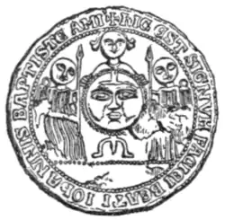 It was customary for pilgrims to bring back as proof of their pilgrimage to a particular shrine or holy place a badge, usually made of lead or pewter, bearing some figure or device identifying it with the name or place. These “pilgrim signs” are frequently alluded to in literature—notably in the Canterbury Tales and in Piers Plowman. The British Museum and the Musée Cluny in Paris have fine collections of them, mainly dredged from the Thames and the Seine. The badges were generally worn fastened to the pilgrim’s hat or cape. Among the best known are those of the cockle or scallop shell of St. James of Compostella in Spain; the “vernicle,” a representation of the miraculous head of Christ; the vera icon, true image, on St Veronica’s handkerchief, at Rome, or of the Abgar portrait at Genoa, of “a vernicle hadde he sowed on his cappe” (Cant. Tales, “Prol.” 685); the Amiens badge of the head of John the Baptist on the charger, the cathedral claiming the custody of the relic from 1206 (fig. 1); and the palm branches or cross of palm leaf, the badge of the “Palmers” pilgrimage to the Holy Land. The most common of the English pilgrims’ signs are those of the shrine of Thomas Becket at Canterbury, the greatest centre of pilgrimage in England.