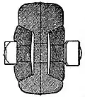 Flat-bottomed rails are fastened to the sleepers by hook-headed spikes, the heads of which project over the flanges. In the United States the spikes are simply driven in with a maul, and the rails stand upright, little care being taken to prepare seats for them on the sleepers, on which they soon seat themselves. The whole arrangement is simple and cheap in first cost, and it lends itself admirably to fast track-laying and to repairs and changes of line. On the continent of Europe the practice is common of notching the sleeper so as to give the rail a slight cant inwards—a result obtained in England by canting the rail in the chairs—and metal plates or strips of felt are put under the rail, which is carefully fastened to the sleeper by screwed spikes (fig. 12). This method of construction is more expensive than the American in first cost, but it gives a more durable and stable track. Such metal plates, or “tie-plates,” have come into considerable use also in the United States, where they are always made of rolled steel, punched with rectangular holes through which the spikes pass. They serve two principal purposes: they diminish the wear of the sleeper under the rail by providing a larger bearing surface, and they help to support the spikes and so to keep the gauge. On all the accepted forms there are two or more flanges at the bottom, running lengthwise of the plate and crosswise of the rail; these are requisite to give proper stiffness, and further, as they are forced into the tie by the weight of passing traffic, they help to fix the plate securely in place. The joints of flanged rails are similar to those employed with bull-headed rails. Various forms, mostly patented, have been tried in the United States, but the one most generally adopted consists of two symmetrical angle bars (fig. 13), varying in length (from 20 to 48 in.), in weight and in the number of bolts, which may be four or six.
