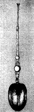 Besides regalia proper, certain other articles are sometimes included under the name, such as the ampulla for the holy oil, and the coronation spoon. The ampulla is of solid gold in the form of an eagle with outspread wings. It weighs 10 oz., and holds 6 oz. of oil. The spoon was not originally used for its present purpose. It is of the 12th or 13th century, with a long handle and egg-shaped bowl. Its history is quite unknown.