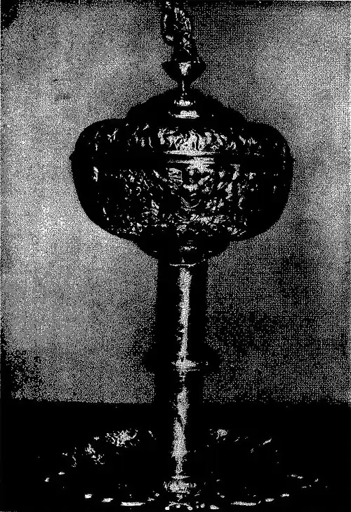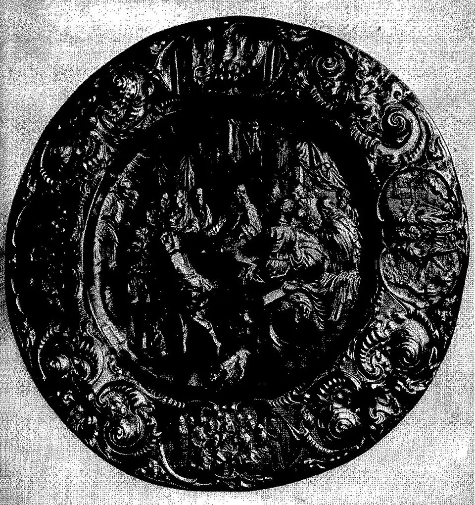 | 1.—Silver-Gilt Altar Dish dated 1660, with representation of the Last Supper; it forms part of the Altar plate at the Coronation and is in the custody of the Chapels Royal. |