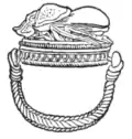 The Phoenician type of ring was primarily intended to carry a scarab or scarabaeoid, usually in a box setting on a swivel, called for by the fact that the flat base of the scarab would be wanted for sealing purposes, but in wear would be most conveniently turned inwards. Strength being necessary, the hoop became massive. A similar arrangement of the signet-scarab is found attached to a twisted ring, which, from its shape, must have been meant to be suspended, and which is shown thus worn on some of the Cypriote terra-cottas.