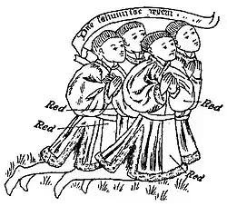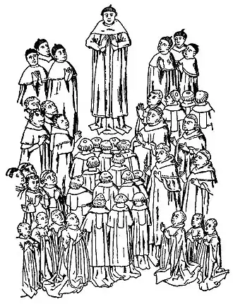 Fig. 6.—Members of New College, Oxford, from Chandler MS. (15th century).