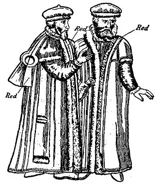 - ↑ These are well described in the account of the opening of parliament by Henry VIII. in 1537 given in Wriothesley’s Chronicle of England (Camden Soc., 1875, ed. W. Hamilton): “all erles marques and lordes, all in their Perliament robes of scarlett furred with white, and their hoodes about their neckes, which were forty in number; everie duke having fower barres of white fur alongest the right side of their robes, and everie earle having three bars, . . and everie lord two barres in likewise.”