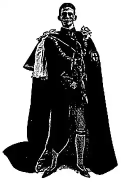 ![]() Lord Chief Justice of England in full robes, scarlet and ermine, with collar of S. S. |