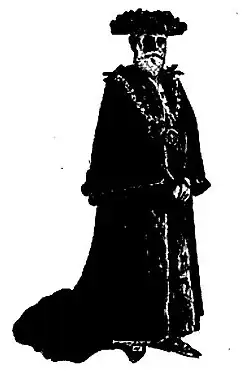 - ↑ The recorders had from an early date annual suits of robes like the mayor, aldermen, &c. See Liber Albus, p. 43: “Habet itaque Recordator pro feodo de Camera totiens et talem vesturam lineatam sive penulatum, quotiens et qualem Major et Aldermanni capiunt annuatim." The chamberlain, common serjeant, &c., had also gowns (see an order of 1523 in St J. Hope, ii. 146). For the sword-bearer's cap of maintenance see article Cap and St John Hope i. lxxvi-lxxix. For mayor's and sheriff's chains see ibid. pp. lxxix-lxxxiv.