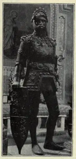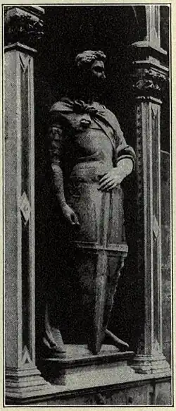- ↑ A kneeling portrait-statue of Mateo is introduced at the back of the central pier. This figure is now much revered by the Spanish peasants, and the head is partly worn away with kisses.