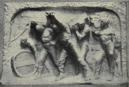 - ↑ Various dates have been assigned to these interesting reliefs by different archaeologists, but the costumes of the figures are strong evidence that they are not later than the 5th century.