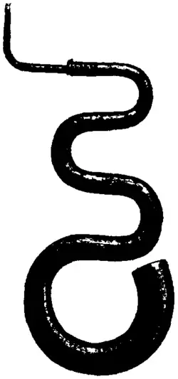 extremity ends with a bent brass tube or crook, to which the