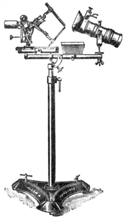 the chief advance in treatment arose from the invention of the present instruments of diagnosis, and that these are of comparatively recent date. The opthalmoscope was the work of Helmholtz. The laryngoscope was invented by Manuel Garcia in the middle of the FIG. 9.—Ophthalmoscope (Landolt's).