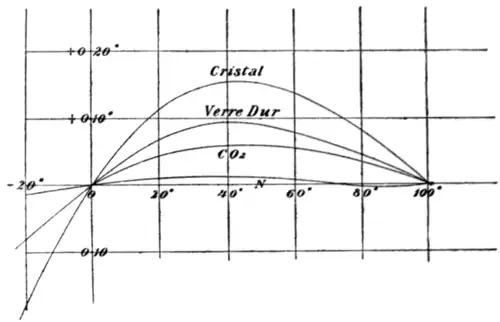 According to some unpublished observations made by the writer in 1893–1894, the scale of an English flint-glass thermometer, tested by comparison with a platinum thermometer, does not differ from that of the constant-pressure air thermometer by more than one or two hundredths of a degree between 0° and 100° C. But for the comparison of the scales to be of any value, it would be necessary to study a large number of such thermometers. It is possible to obtain much more consistent results if the thermometers are not heated above 50° C.