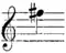 In the trumpet the notes of the harmonic series from the 3rd to the 10th or 16th upper partials are produced by the varied tension of the lips and pressure of breath called overblowing. The fundamental and the second harmonic are rarely obtainable, and are therefore left out of consideration; the next octave from the 4th to the 8th harmonics contains only the 3rd, 5th and minor 7th, and is therefore mainly suitable for fanfare figures based on the common chord. The diatonic octave is the highest and its upper notes are only reached by very good players on trumpets of medium pitch. Examination of the scoring for the trumpet before any satisfactory means of bridging over the gaps in the compass had been found, shows how little the composers, and especially Bach, allowed themselves to be daunted by the limited resources at their disposal. A curious phenomenon has been observed[1] in connexion with the harmonic series of the trumpet, when the instrument is played by means of a special clarino mouthpiece (a shallow one enabling the performer to reach the higher harmonics), in which the passage at the bottom of the cup inaugurated by the sharp angle (known as the grain in French) is prolonged in cylindrical instead of conical bore for a distance of about 10 cm. (4 in.) right into the main tube. This peculiar construction of the mouthpiece, which might be considered insignificant, so upsets the acoustic properties of the tube that extra notes can be interpolated between the legitimate notes of the harmonic series thus: —