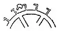 stems rising from the ends of the crossbar,
