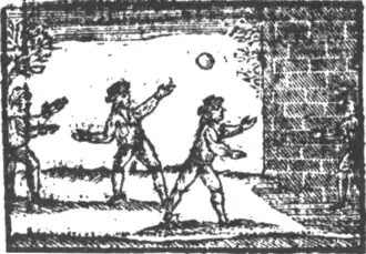 With what great Force the little Ball Rebounds, when struck against the Wall; See how intent each Gamester stands; Mark well his Eyes, his Feet, his Hands!