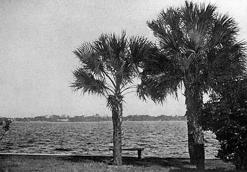 "Another thing I wish you to see," he continued, "is a palmetto grove on a rich hummock a few miles from here. The grove is about seven miles in length by three in breadth. The ground is covered with long grass, uninterrupted with bushes or other trees. It is the finest grove of palmettos I have ever seen and I have oftentimes thought that it would make a fine subject for an artist."