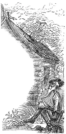 “Then he cocked his head down and took another look; he glances up perfectly joyful, this time; winks his wings and his tail both, and says, ‘O, no, this ain't no fat thing, I reckon! If I ain't in luck!—why it's a perfectly elegant hole!’ So he flew down and got that acorn, and fetched it up and dropped it in, and was just tilting his head back, with the heavenliest smile on his face, when all of a sudden he was paralyzed into a listening attitude and that smile faded gradually out of his countenance like breath off'n a razor, and the queerest look of surprise took its place. Then he says, ‘Why I didn't hear it fall!’ He cocked his eye at the hole again, and took a long look; raised up and shook his head; stepped around to the other side of the hole and took another look from that side; shook his head again. He studied a while, then he just went into the details—walked round and round the hole and spied into it from every point of the compass. No use. Now he took a thinking attitude on the comb of the roof and scratched the back of his head with his right foot a minute, and finally says, ‘Well, it's too many for me, that's certain; must be a mighty long hole; however, I ain't got no time to fool around here, I got to 'tend to business; I reckon it's all right—chance it, anyway.’