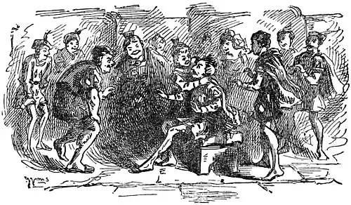 "'Twas a marvelous jest, and bravely carried out. They gave you a heavy sleeping draught before you went to bed, and in the night they bore you to a ruined chamber where all had fallen to decay, and placed these rags of clothing by you. And when your sleep was spent and you came forth, two strangers, well instructed in their parts, were here to meet you; and all we, your friends, in our disguises, were close at hand, to see and hear, you may be sure. Ah, 'twas