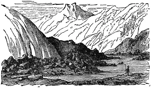 "One can form some idea of the altitude of this barrier of ice when it is mentioned that from Hofdabrekka farm, which lies high up on a field, one could not see Hjorleifshofdi opposite, which is a fell 640 feet in height; but in order to do so had to clamber up a mountain slope east of Hofdabrekka 1,200 feet high."