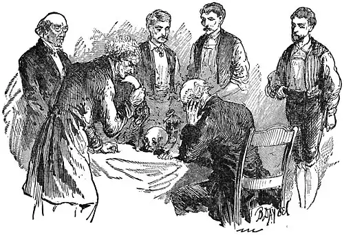 "Pierre Balmat was fair; he wore a straw hat. This bit of skull, with the tuft of blond hair, was his; this is his hat. Pierre Carrier was very dark; this skull was his, and this felt hat. This is Balmat's hand, I remember it so well!" and the old man bent down and kissed it reverently, then closed his fingers upon it in an affectionate grasp, crying out, "I could never have dared to believe that before quitting this