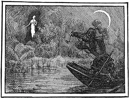 But the faithful girl sang on, night after night, month after month, and patiently waited; her reward must come at last. Five years dragged by, and still, every night at midnight, the plaintive tones floated out over the silent land, while the distant boatmen and peasants thrust their fingers into their ears and shuddered out a prayer.
