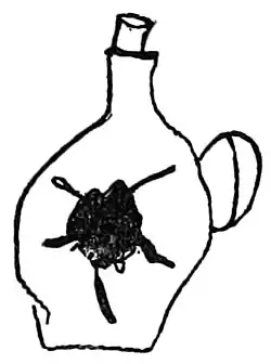 Among these was my Etruscan tear-jug. I have made a little sketch of it here; that thing creeping up the side is not a bug, it is a hole. I bought this tear-jug of a dealer in antiquities for four hundred and fifty dollars. It is very rare. The man said the Etruscans used to keep tears or something in these things, and that it was very hard to get hold of a broken one, now. I also set aside my Henri II plate. See sketch from my pencil; it is in the main correct, though I think I have foreshortened one end of it a little too much, perhaps.