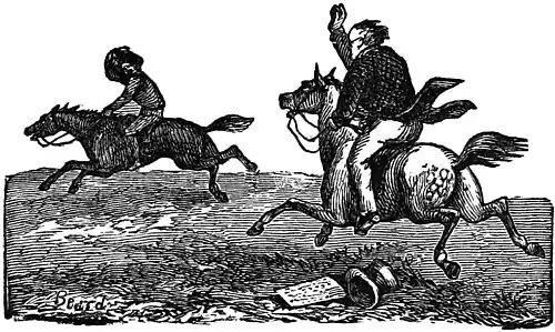 "First-off, I thought it would certainly give me the botts, but I don't mind it now. I've got it where the hair's short, I think; and dontchuknow, they made me learn Latin, too. Now between you and me, I wouldn't give a for all the Latin that was ever jabbered; and the first thing I calculate to do when I get through, is to just sit down and forget it. 'Twont take me long, and I don't mind the time, anyway. And I tell you what! the difference between school-teaching over yonder and school-teaching over here,—sho! We don't know anything about it! Here you've got to peg and peg and peg and there just ain't any let-up,—and what you learn here, you've got to know, dontchuknow,—or else you'll have one of thesespavined, spectacled, ring-boned, knock-kneed old professors in your hair, I've been here long enough, and I'm getting blessed tired of it, mind I tell you. The old man wrote me that he was coming over in June, and said he'd take me home in August, whether I was done with my education or not, but durn him, he didn't come; never said why; just sent me a hamper of Sunday school books, and told me to be good, and hold on a while. I don't take to Sunday school books, dontchuknow,—I don't hanker after them when IT can get pie,—but I read them, anyway, because whatever the old man tells me to do, that's the thing that I'm a-going to do, or tear something you know. I buckled in and read all of those books, because he wanted me to; but that kind of thing don't excite me, I like something hearty. But I'm awful homesick. I'm homesick from ear-socket to crupper, and from crupper to hock joint; but it ain't any use, I've got to stay here, till the old man drops the rag and gives the word,—yes, sir, right here in this country I've got to linger till the old man says Come!—and you bet your bottom dollar, Johnny, it ain't just as easy as it is for a cat to have twins!"