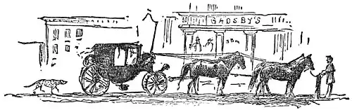 "I will tell you about that man. It was in Jackson's time. Gadsby's was the principal hotel, then. Well, this man arrived from Tennessee about nine o'clock, one morning, with a black coachman and a splendid four-horse carriage and an elegant dog, which he was evidently fond and proud of; he drove up before Gadsby's and the clerk and the landlord and everybody rushed out to take charge of him, but he said, 'Never mind' and jumped out and told the coachman to wait,—said he hadn't time to take anything to eat, he only had a little claim against the government to collect, would run across the way, to the Treasury, and fetch