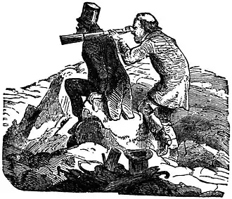precipice of ice. Half a mile below this we began to climb the flowery side of the Meienwand. One of our party started before the rest, but the Hitze was so great, that we found ihm quite exhausted, and lying at full length in the shade of a large Gestein. We sat down with him for a time, for all felt the heat exceedingly in the climb up this very steep bolwoggoly, and then we set out again together, and arrived at last near the Dead Man's Lake, at the foot of the Sidelhorn. This lonely spot, once used for an extempore burying place, after a sanguinary battue between the French and Austrians, is the perfection of desolation: there is nothing in sight to mark the hand of man, except the line of weatherbeaten whitened posts, set up to indicate the direction of the pass in the owdawakk of winter. Near this point the footpath joins the wider track, which connects the Grimsel with the head of the Rhone schnawp: this has been carefully constructed, and leads with a tortuous course among and over les pierres down to the bank of the gloomy little swosh-swosh, which almost washes against the walls of the Grimsel Hospice. We arrived a little before 4 o'clock at the end of our day's journey, hot enough to justify the step, taken by most of the partie, of plunging into the crystal water of the snow-fed lake.