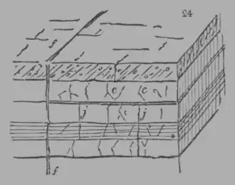 - ↑ For suggestions to observers on the subject of cleavage and joints, and a method of calculation to be applied to cases of inclined strata, see Guide to Geology, 3d edition. The Geological Intersector, a small and cheap instrument, which has been constructed by the author, and engraved by Mr. Lowry, may be used to represent the phenomena, and save the trouble of calculation.