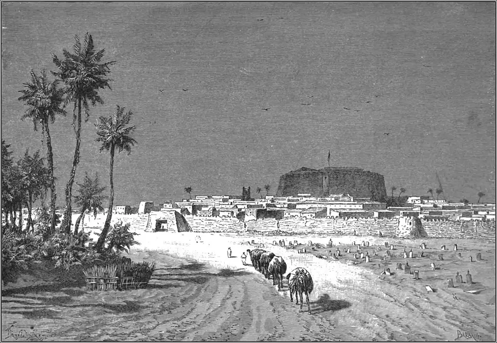On the route to Rhât, west of the capital, the oasis of Otba or Tessawa, an ancient settlement of Negroes from Haussa, is the only district containing any groups of population. Beyond this point nothing is met except a few wells, such as that of Sharaba, near which Miss Tinné, the "King's daughter," as she was called by the natives, was assassinated in 1869. In the Hofra