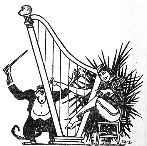 But it was wonderful, when she began to play, how sure-footed she was! Her harp seemed half human, half divine. As for Angie, she seemed half human, half monkey. How merrily she leaped from string to string! How her toes twinkled, as she ran from chord to chord, and vice versâ. Soon she was the pedicure of all eyes. For Angela, though only faintly pretty, had a beautiful sole. True, it was somewhat blistered; but, at such a time even fallen arches are beautiful. Look at the Temple of Diocletian, for instance.